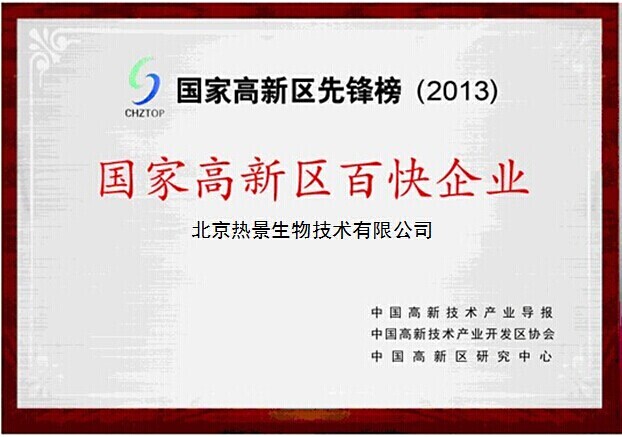 由中國高新技術(shù)產(chǎn)業(yè)導(dǎo)報(bào)社、中國高新技術(shù)產(chǎn)業(yè)開發(fā)區(qū)協(xié)會(huì)和中國高新區(qū)研究中心共同主辦“國家高新區(qū)先鋒榜(2013)”推選結(jié)果公布。北京熱景生物技術(shù)有限公司年度經(jīng)營規(guī)模和快速增長(zhǎng)方面取得的突出成績(jī),榮列“國家高新區(qū)先鋒榜(2013)百快企業(yè)”榜單。