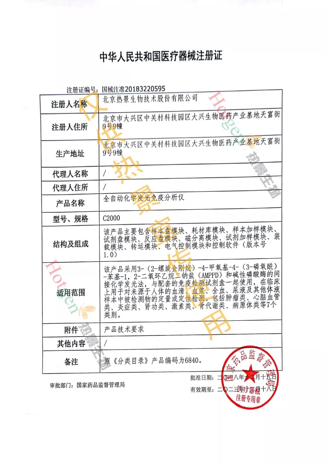 日前,熱景生物重磅新品C2000全自動化學(xué)發(fā)光免疫分析系統(tǒng)獲得國家食品藥品監(jiān)督管理局的批準文號,國械注準:20183220595,正式上市。熱景生物經(jīng)過長期的研發(fā)和測試,投入了大批的研發(fā)力量,整合大量的行業(yè)資源,借鑒業(yè)界先進的檢測平臺,融合超凡的工業(yè)設(shè)計,潛心研發(fā)出極具行業(yè)競爭力的全自動化學(xué)發(fā)光檢測設(shè)備。