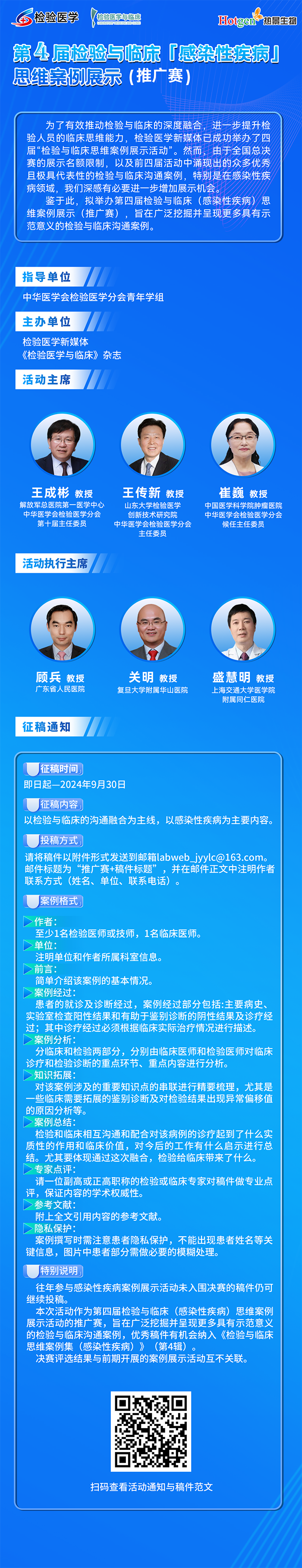 隨著檢驗醫學專業的飛速發展,多學科協作診療(MDT)的深入推進,檢驗醫學在臨床診療過程中的地位越來越高、學術地位日益凸顯,并被臨床醫生稱為“醫生的眼睛”和“醫學界的偵探”。同時,檢驗醫學是聯系基礎醫學與臨床醫學的紐帶,是多學科的組合體。現代檢驗醫學倡導以患者為中心,以疾病診斷和治療為目的,加強檢驗醫學人員學習臨床知識,開展檢驗與臨床對話顯得尤為重要。