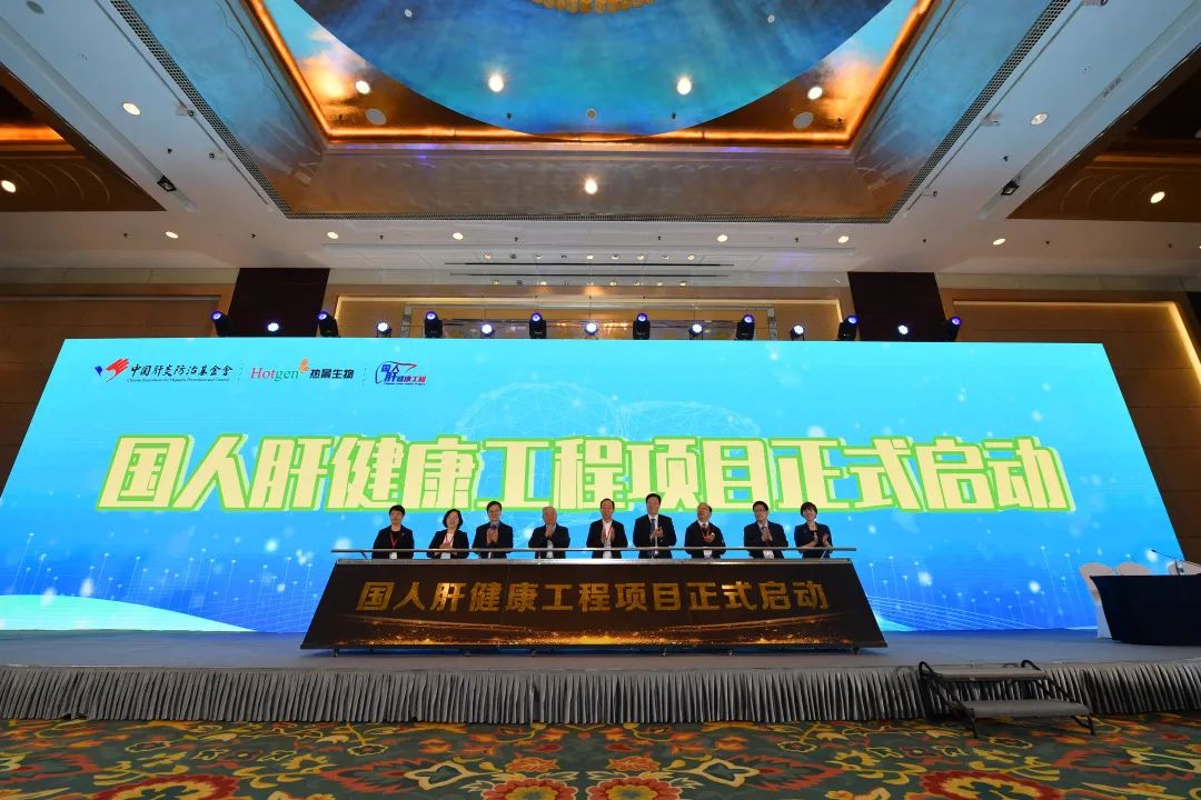王宇理事長、楊希忠副理事長、賈繼東教授、王傳新教授、徐小元教授、段鐘平教授、南月敏教授、尤紅教授、李增德秘書長以及牽頭方熱景生物揭小池副總經理共同開啟了項目啟動鍵,宣告“國人肝健康工程項目”正式啟動。啟動會由中國肝炎防治基金會李增德秘書長主持。