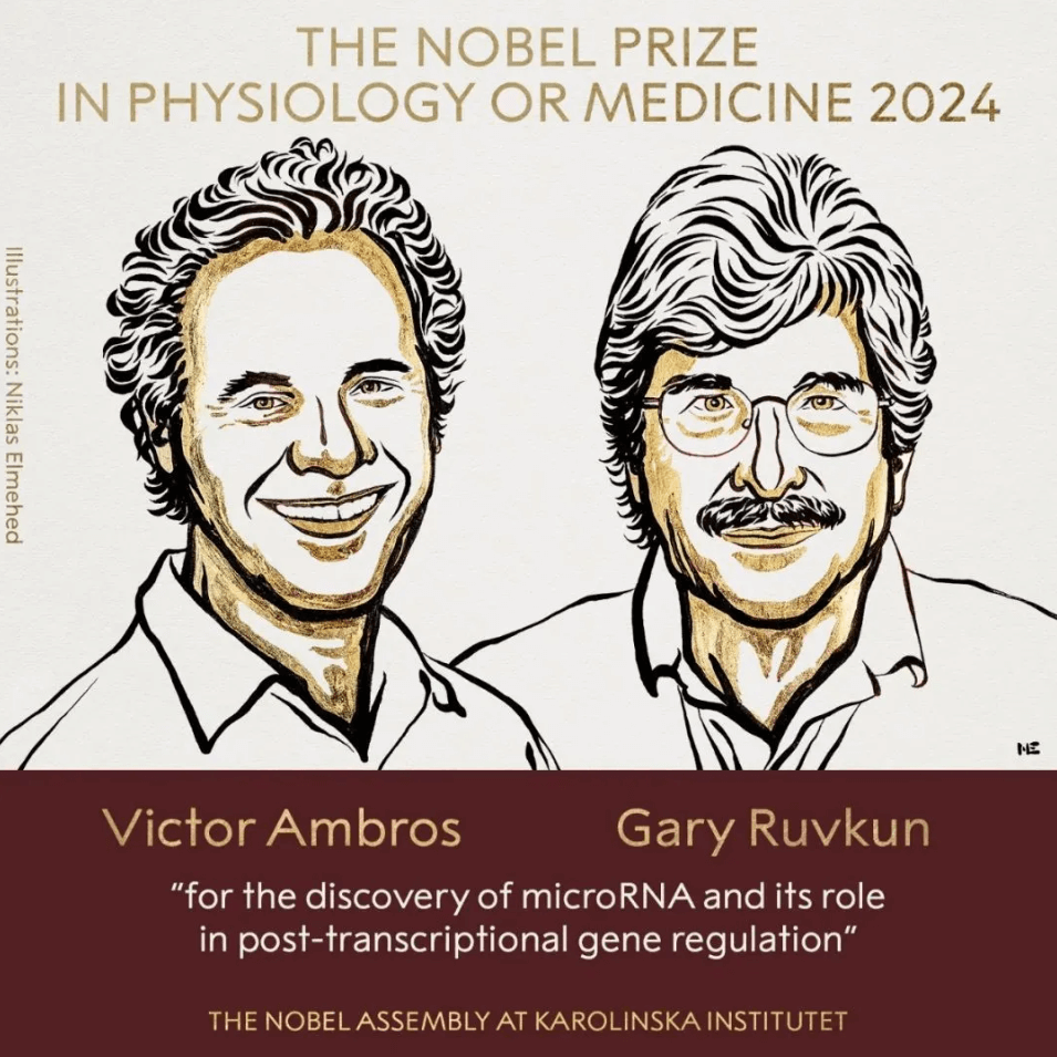 2024年諾貝爾生理學(xué)或醫(yī)學(xué)獎(jiǎng)再次聚焦基因調(diào)控,將今年的諾貝爾生理學(xué)或醫(yī)學(xué)獎(jiǎng)授予美國(guó)科學(xué)家 Victor Ambros 和 Gary Ruvkun,以表彰他們?cè)诎l(fā)現(xiàn)微小 RNA(microRNAs、miRNAs)及其在基因調(diào)控中的作用方面做出的開創(chuàng)性貢獻(xiàn)。miRNAs作為調(diào)控基因表達(dá)的重要分子,在癌癥、神經(jīng)退行性疾病、心血管疾病等多種病理過(guò)程中發(fā)揮著關(guān)鍵作用。miRNAs已成為檢測(cè)疾病進(jìn)展的理想標(biāo)志物。