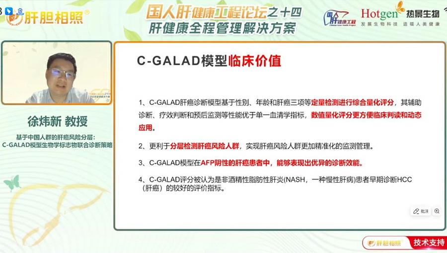 上海交通大學(xué)醫(yī)學(xué)院附屬仁濟(jì)醫(yī)院嘉定分院檢驗(yàn)科的徐煒新教授圍繞肝癌早篩技術(shù)革新發(fā)表主題報(bào)告,他深入解析C-GALAD模型的臨床價(jià)值與應(yīng)用前景,為肝癌防控提供新策略。現(xiàn)狀與突破----我國(guó)肝癌早期診斷率低,傳統(tǒng)超聲聯(lián)合AFP檢測(cè)對(duì)早期小肝癌敏感性不足。基于《海南省早期肝癌篩查實(shí)施方案》將“肝癌三項(xiàng)”(AFP、AFP-L3%、異常凝血酶原)納入常規(guī)篩查,徐主任指出,多標(biāo)志物聯(lián)合檢測(cè)成為破局關(guān)鍵:AFP-L3%提升惡性鑒別特異性,異常凝血酶原(DCP)反映腫瘤侵襲性,三者互補(bǔ)顯著提高早診效能。 C-GALAD模型:本土化創(chuàng)新典范----針對(duì)中國(guó)80%以上肝癌由乙肝驅(qū)動(dòng)的人群特征,熱景生物研發(fā)的C-GALAD模型,整合年齡、性別與“肝癌三項(xiàng)”定量數(shù)據(jù),通過算法生成風(fēng)險(xiǎn)評(píng)分,實(shí)現(xiàn)三大優(yōu)勢(shì):①精準(zhǔn)分層:量化評(píng)分指導(dǎo)高危人群分級(jí)管理(如肝硬化患者每6個(gè)月聯(lián)合超聲篩查);②動(dòng)態(tài)監(jiān)測(cè):評(píng)分變化早于影像學(xué)提示復(fù)發(fā)風(fēng)險(xiǎn),助力療效評(píng)估;③指南推薦:獲《原發(fā)性肝癌診療指南(2024年版)》認(rèn)可,成為輔助診斷核心工具。臨床與政策協(xié)同---國(guó)內(nèi)外指南均強(qiáng)調(diào)風(fēng)險(xiǎn)分層管理。徐主任呼吁推動(dòng)“C-GALAD+超聲”聯(lián)合篩查普及,并展望未來融合液體活檢、AI影像技術(shù),構(gòu)建普惠化早篩體系。