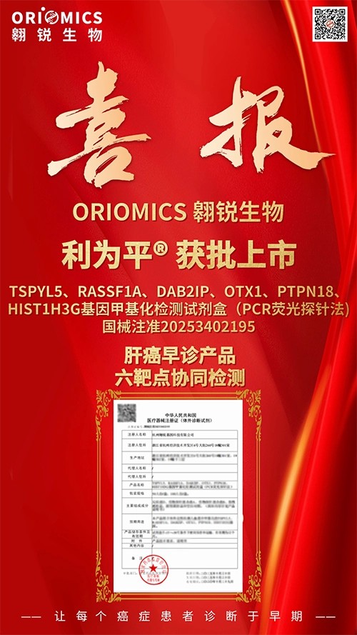 近日,熱景生物重要參股公司翱銳生物自主研發(fā)的利為平?——TSPYL5、RASSF1A、DAB2IP、OTX1、PTPN18、HIST1H3G基因肝癌甲基化檢測試劑盒(PCR熒光探針法)獲得國家藥品監(jiān)督管理局頒發(fā)的Ⅲ類醫(yī)療器械注冊證(注冊證號:國械注準(zhǔn)20253402195)。該產(chǎn)品用于體外定性檢測人血漿中相關(guān)基因甲基化,適用于臨床上對疑似原發(fā)性肝癌的輔助診斷。