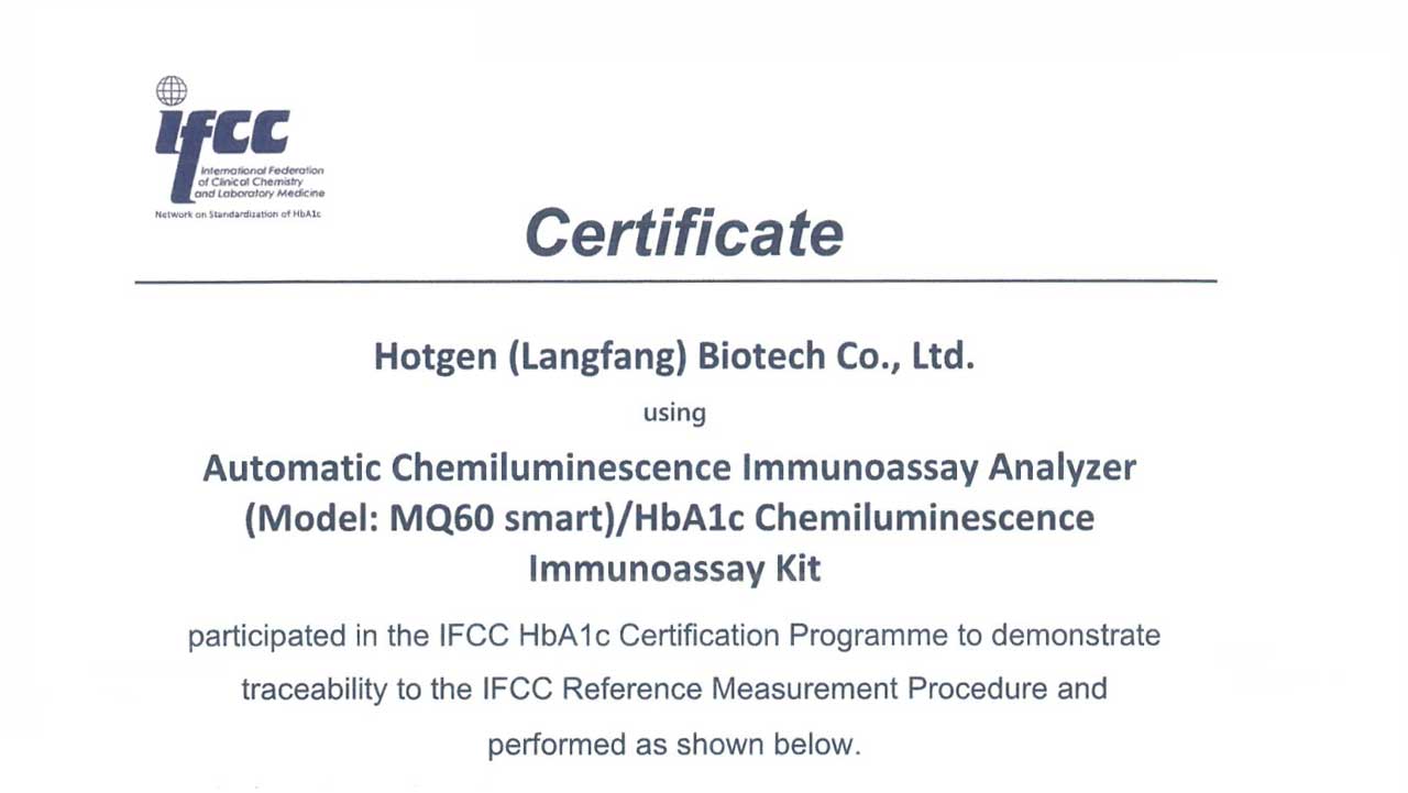 近日,熱景生物單人份化學發光免疫分析儀MQ60Smart檢測HbA1c獲得國際臨床化學與實驗室醫學聯合會(IFCC)的認證,確保了其檢測結果的標準化、規范化和國際化水平。同時意味著MQ60Smart檢...
